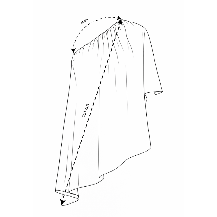 - Asymmetrisk snit med en bar skulder og en lang kappeærme